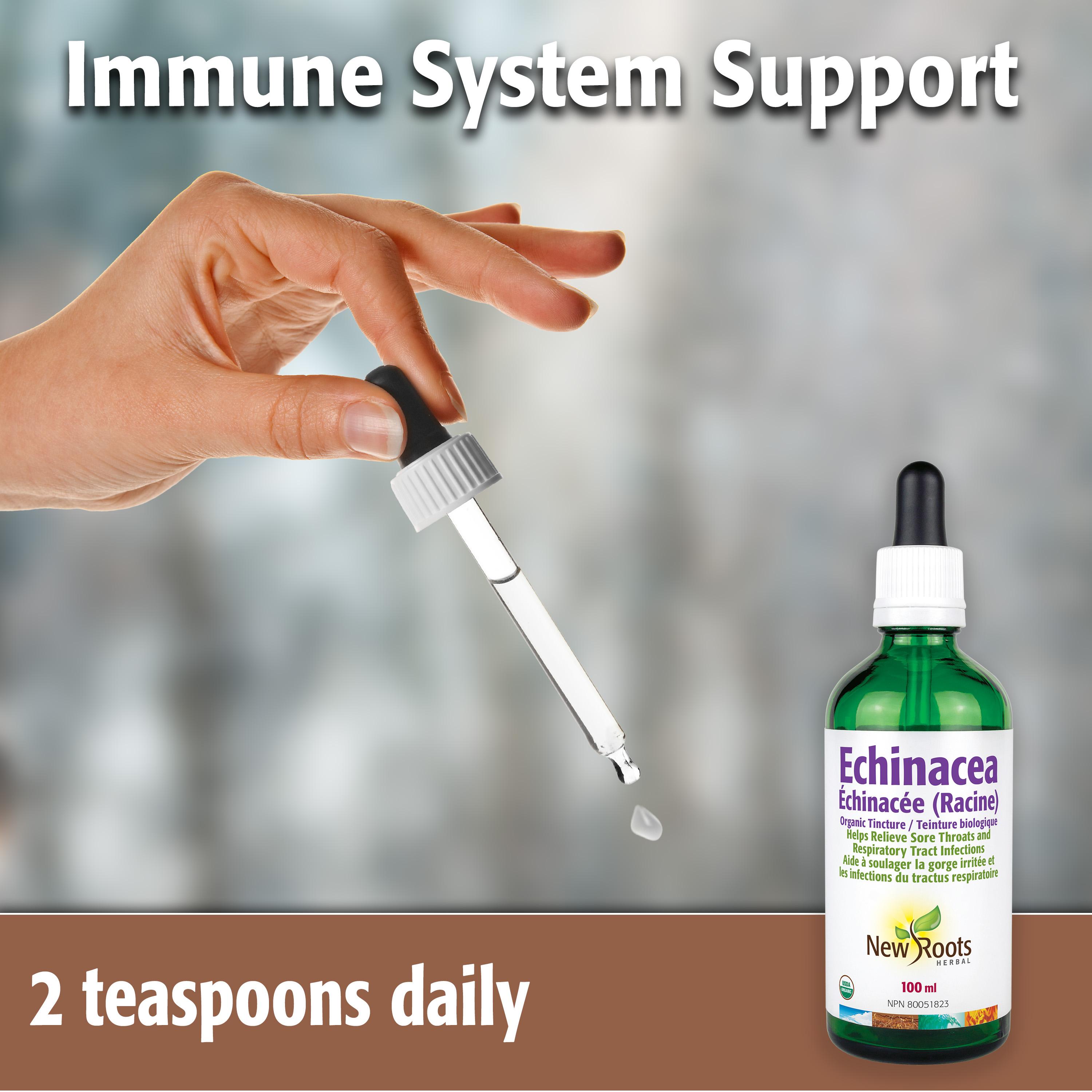 Echinacea root contains natural compounds that may support your bodyâs immune system and overall wellness. Research suggests it can help the body respond to seasonal stressors and maintain balanced immune function. Our liquid tincture, made from high-quality organic Echinacea angustifolia, is fast-absorbing and crafted to deliver consistent, natural support during seasonal changes.