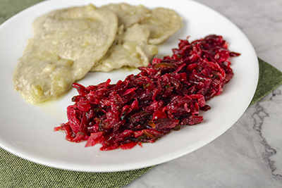 This recipe has been passed down through multiple generations in Poland, although other Eastern European countries have their own variations. It’s known as a winter salad as the ingredients were available well into the winter months, having been preserved through fermentation or lasting well in cold rooms. As for the red part, anyone who ever cooked with beets will attest to their brilliant and penetrating colour. Handle with care, as it can stain surfaces and clothing. For the best taste and texture, prepare it the night before and store it in a glass jar in the fridge for up to a week. You may use the coarse grater attachment on a food processor to save time.