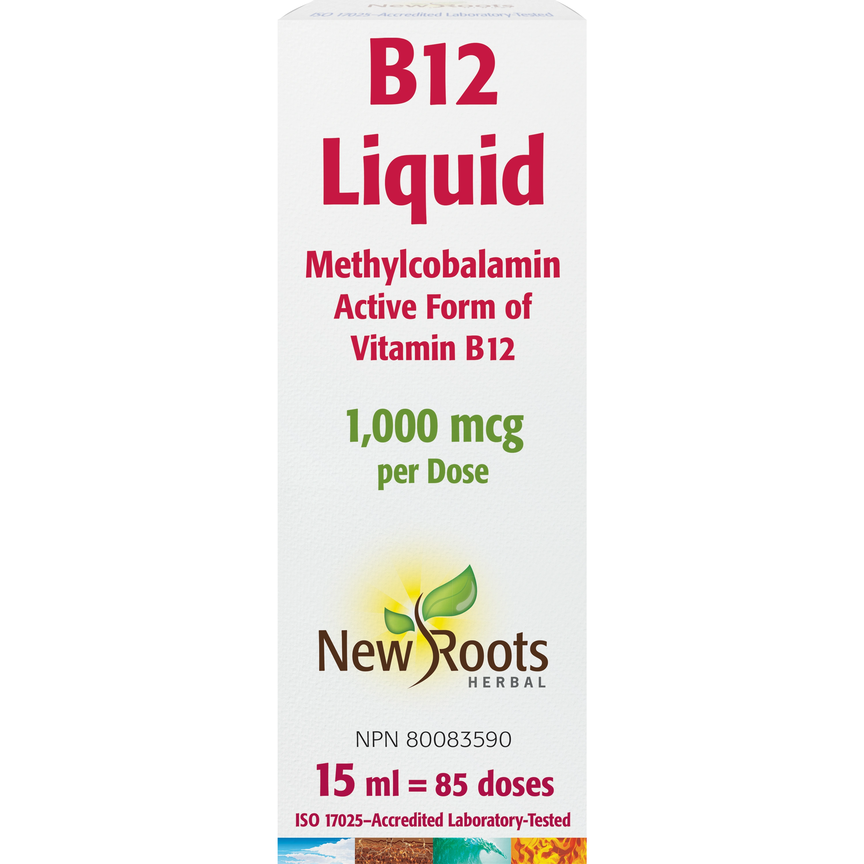Vitamin B12 is pivotal for immune performance, energy metabolism, and red blood cell formation. New Roots Herbal’s B12 Liquid, in its active form as methylcobalamin, employs a liquid dosage matrix for fast action and ease of absorption. Meat, fish, and dairy products are all excellent sources of B12; needless to say, people opting for vegetarian or vegan lifestyles, or those afflicted with intestinal malabsorption, may require alternative sources. Our B12 Liquid formula supplement targets B12 deficiency, which in turn could have a direct impact on energy, immunity, and endurance.