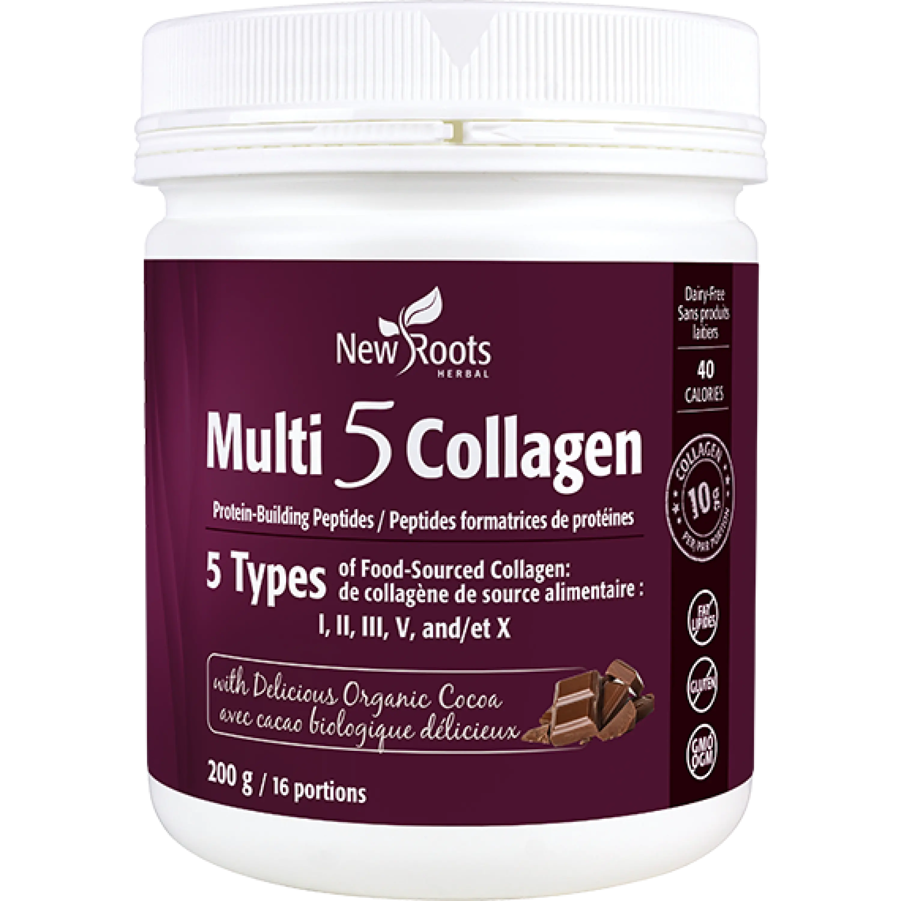 Multi 5 Collagen is a comprehensive source of the protein-building peptides I, II, III, V, and X. These five naturally occurring forms of collagen protein are crucial for healthy skin, muscle, and more. They also help produce antibodies and build and repair body tissues.