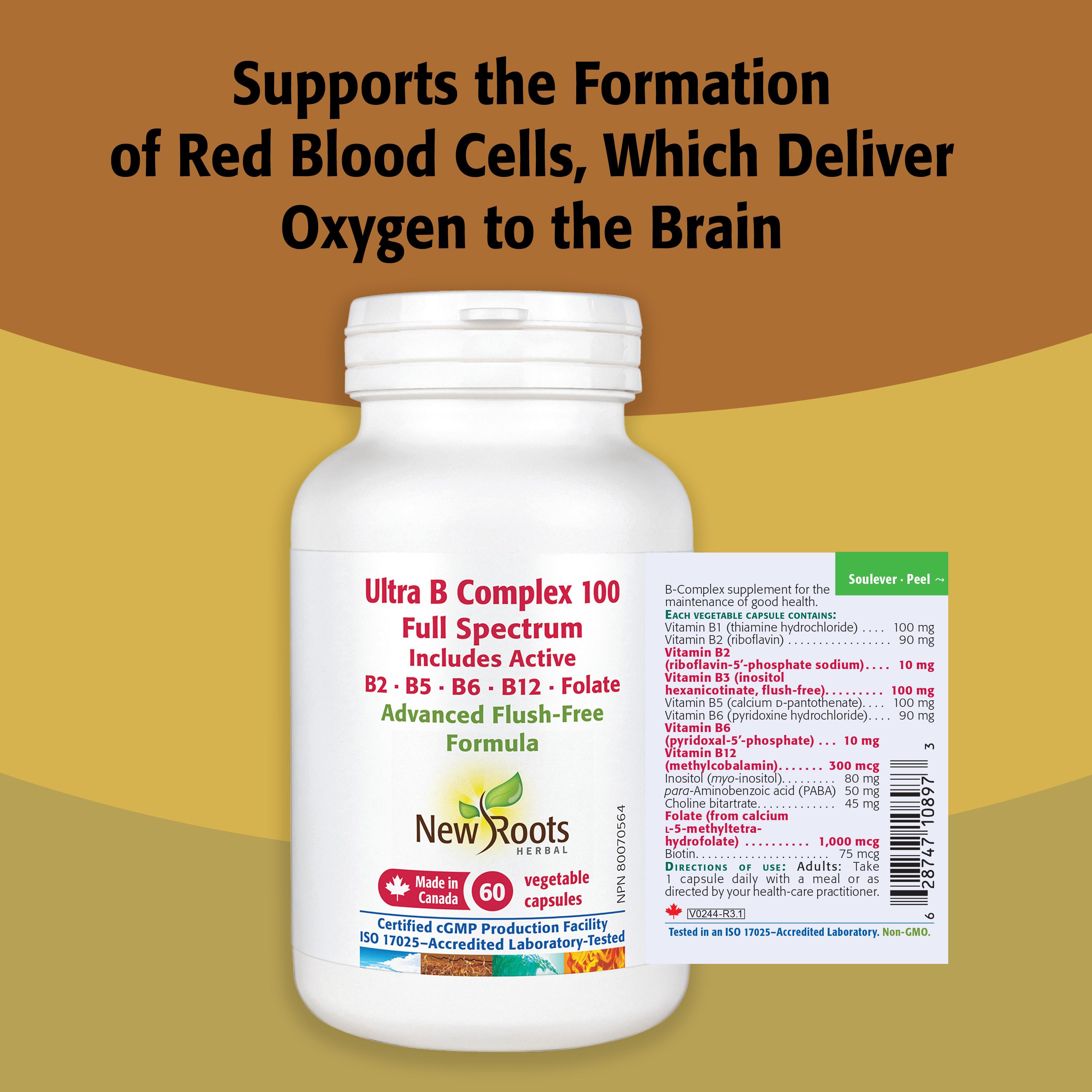 New Roots Herbal Ultra B Complex uses coenzyme (active form) B vitamins for maximum absorption. The results are impressive: a fast-acting B complex that does what B vitamins are supposed to do—actively support the mind, mood, nervous, cardiovascular, and digestive systems.